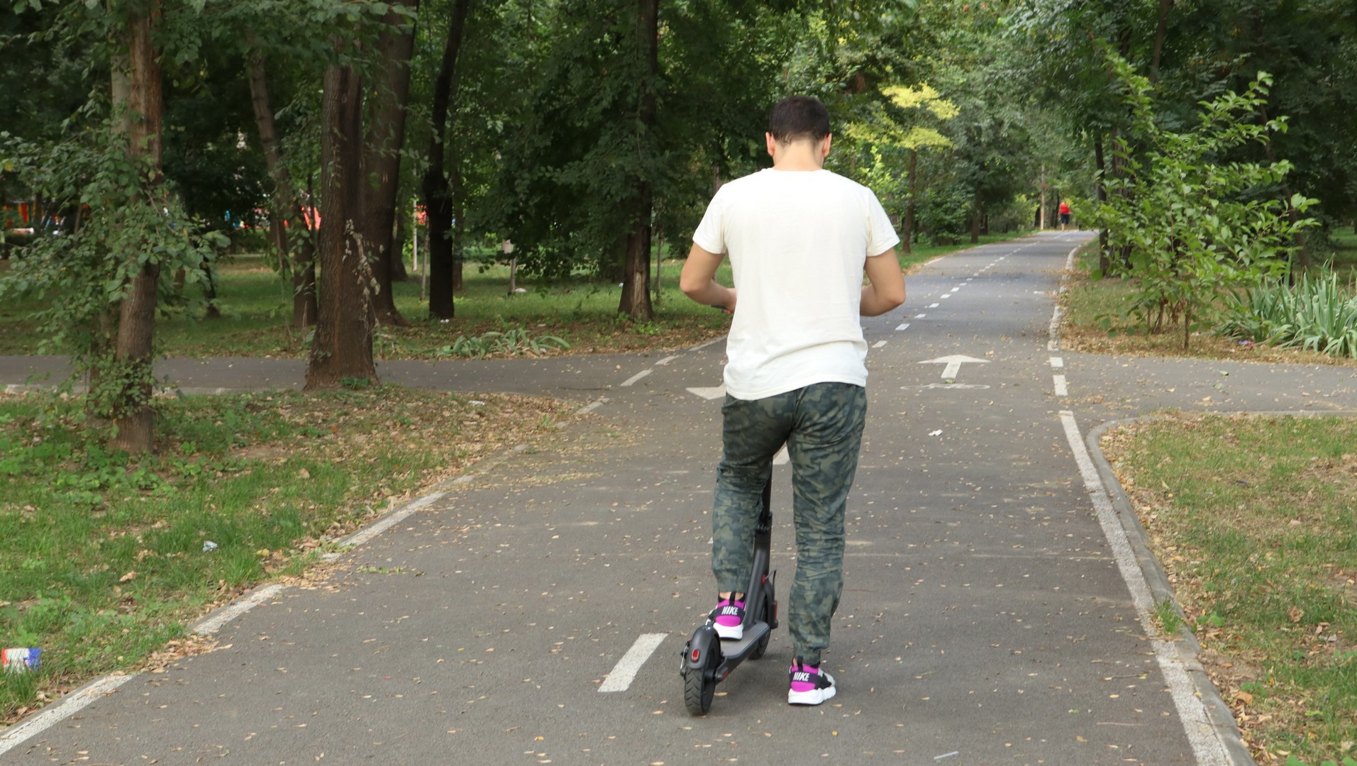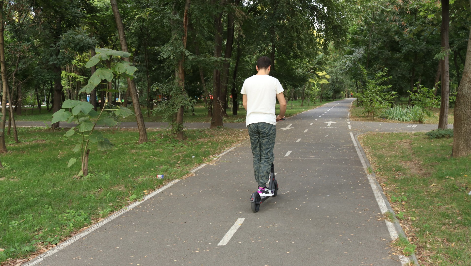 Dacă rămâi fără baterie, o poți folosi și ca trotinetă clasică, însă doar pe distanțe scurte, fiind mai grea și mai înaltă decât o trotinetă clasică. Autonomia obținută de mine este de 26 kilometri, combinând modul ECO cu cel standard. Folosită doar pe ECO am reușit să obțin o autonomie maximă de până la 32 de kilometri. Poată fi folosită pe drumurile de la noi (dacă în orașul tău nu există piste de bicicletă), trece bine peste gropi, chiar dacă nu are suspensie, însă evident nu vorbim despre cratere. 🙂