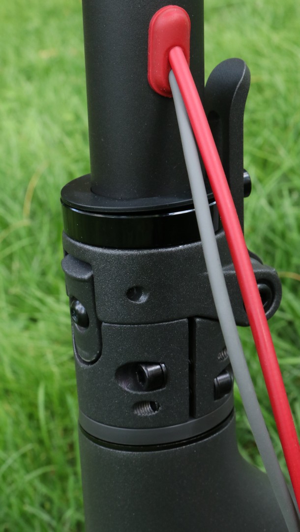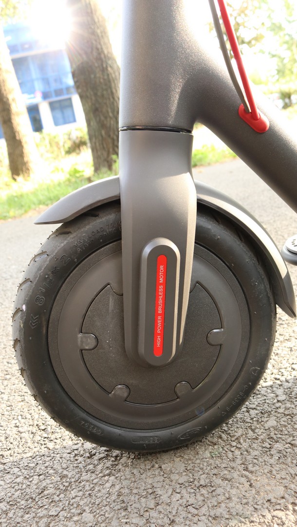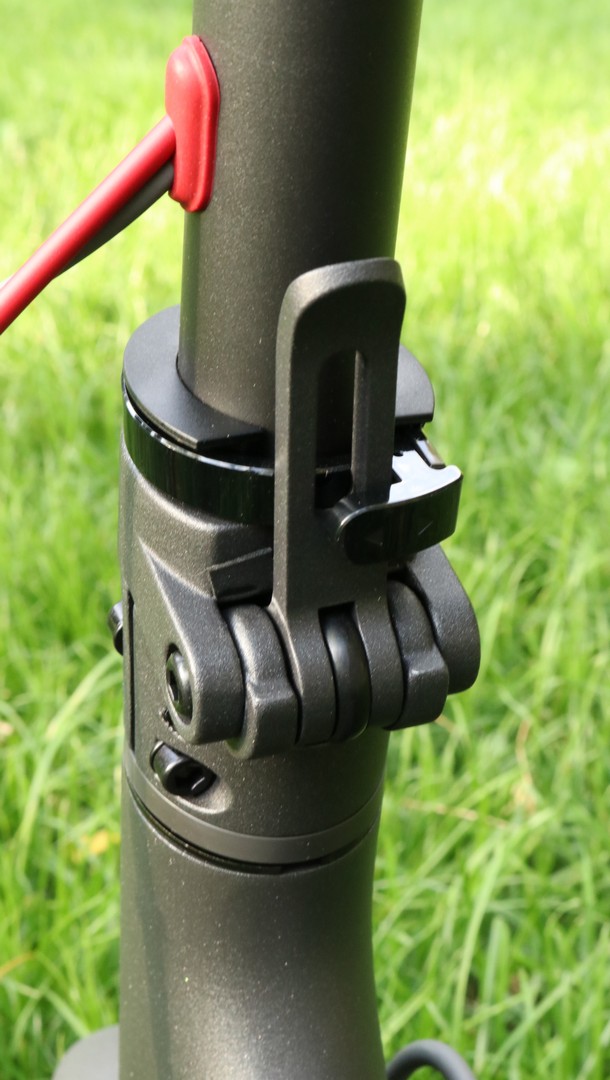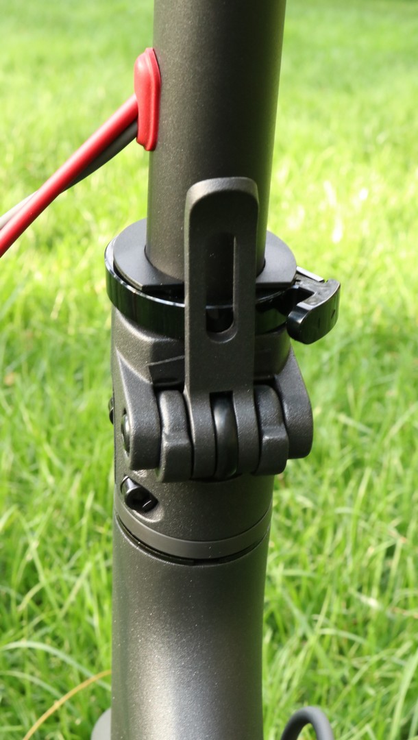 Xiaomi M365 poate fi pliată precum o trotinetă obișnuită, iar acest lucru se poate face în doar câteva secunde. Sistemul de pliere foarte bine gândit, practic ghidonul se prinde cu ajutorul claxonului de aripa din spate. Ca și puncte slabe, aș putea preciza faptul că trotineta are un mic joc în cadru, mai exact în zona unde se desface pentru a putea fi pliată, însă acesta nu este foarte deranjant. Nu are suspensie, însă cauciucurile pe aer cu diametru de 8.5 inci reușesc să amortizeze din șocuri.