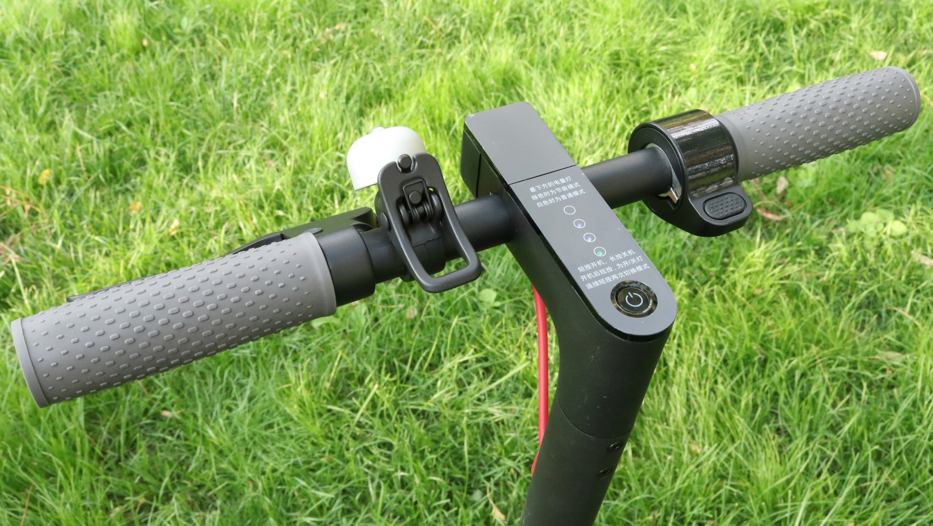 Pe ghidon sunt prezente următoarele elemete: claxonul clasic, frâna de mână, farul cu LED, 4 LED-uri care indică capaciatatea bateriei, precum și butonul pentru pornire. Pentru pornirea acesteia trebuie să ții apăsat timp de 3 secunde butonul. După pornire, butonul ON/OFF poate fi folosit pentru aprinderea farului (printr-o apăsare scurtă), dar și pentru activarea modului ECO (prin dubla apăsare a acestuia).